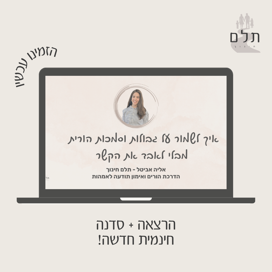 במסגרת תלם חינוך פיתחתי את תוכנית הליווי “זמן אמא” – תהליך עומק, המשלב הדרכת הורים, כלים פרקטיים לניהול זמן ושגרה עם עבודה רגשית ותודעתית לחיזוק הביטחון, הדימוי והחמלה העצמית של אמהות.